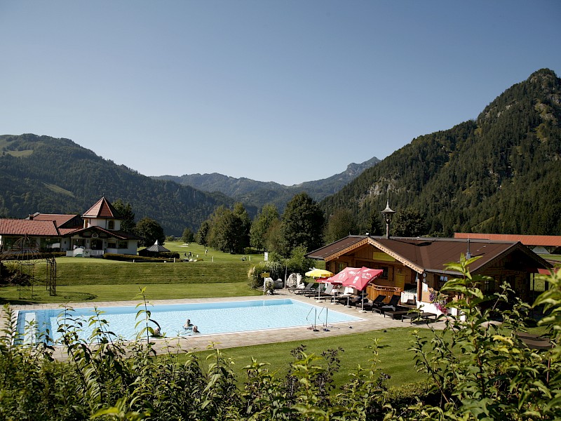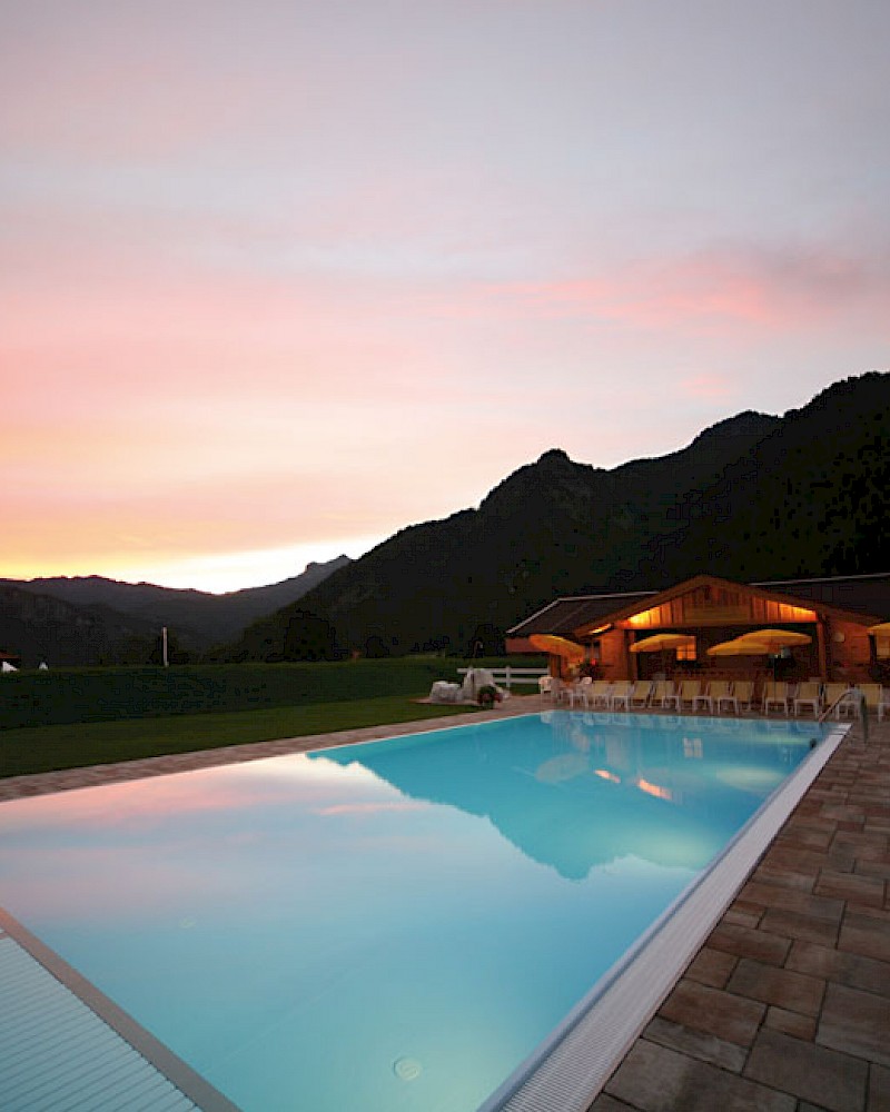 Schwimmen Sie im Sommeruntergang der Berwelt entgegen. In unserem beheizten Pool finden Sie an heißen Sommertagen die erholsame Erfrischung und die wohltuende Ruhe. Lassen Sie auf der großzügigen Liegewiese die Blicke schweifen und tauchen Sie ein in die majestätische Schönheit des Wilden Kaisers.