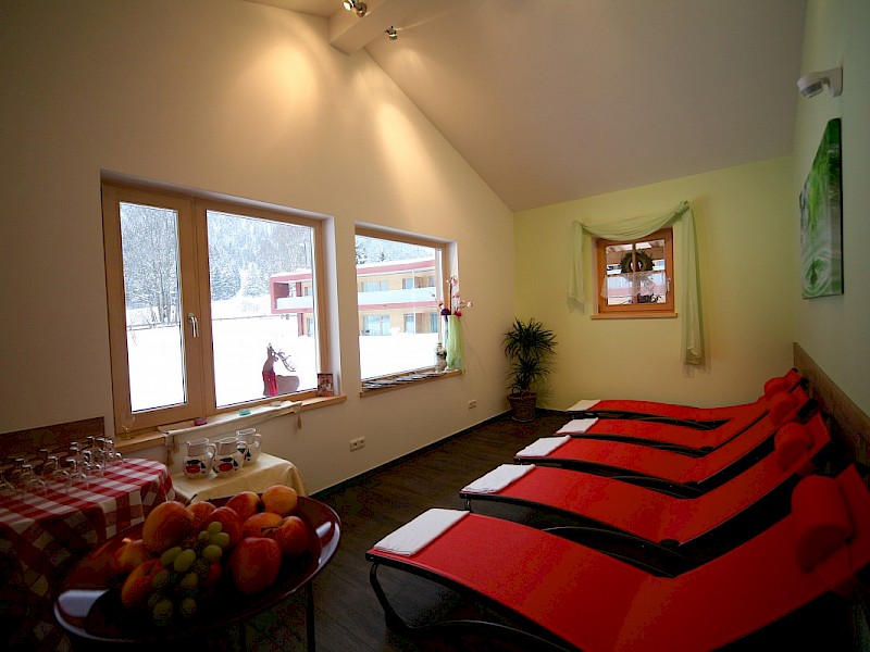 In der Saunastube kommen Sie nicht nur anständig ins Schwitzen sondern genießen ebenfalls den Panoramablick. Im Ruheraum sorgen frische Getränke und Obst dafür, dass Sie wieder auftanken.