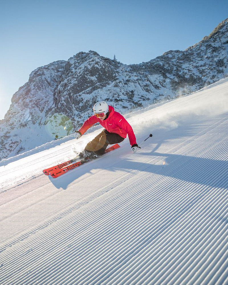 Pleasure skiers wedeling across the wide, not too steep pistes in the Steinplatte, Waidring's local ski area. The contemporary gondola and chairlifts leave you wanting for nothing and nothing stands in the way of you enjoying a detour into neighbouring Germany either, since the ski area is connected with the Reit im Winkl ski area in Bavaria. What about a trip to the legendary Winkelmoosalm with Rosi Mittermaier? Après-ski fans are also well catered for in the traditional lodges and in the contemporary, yet traditional Schindldorf at the valley station.