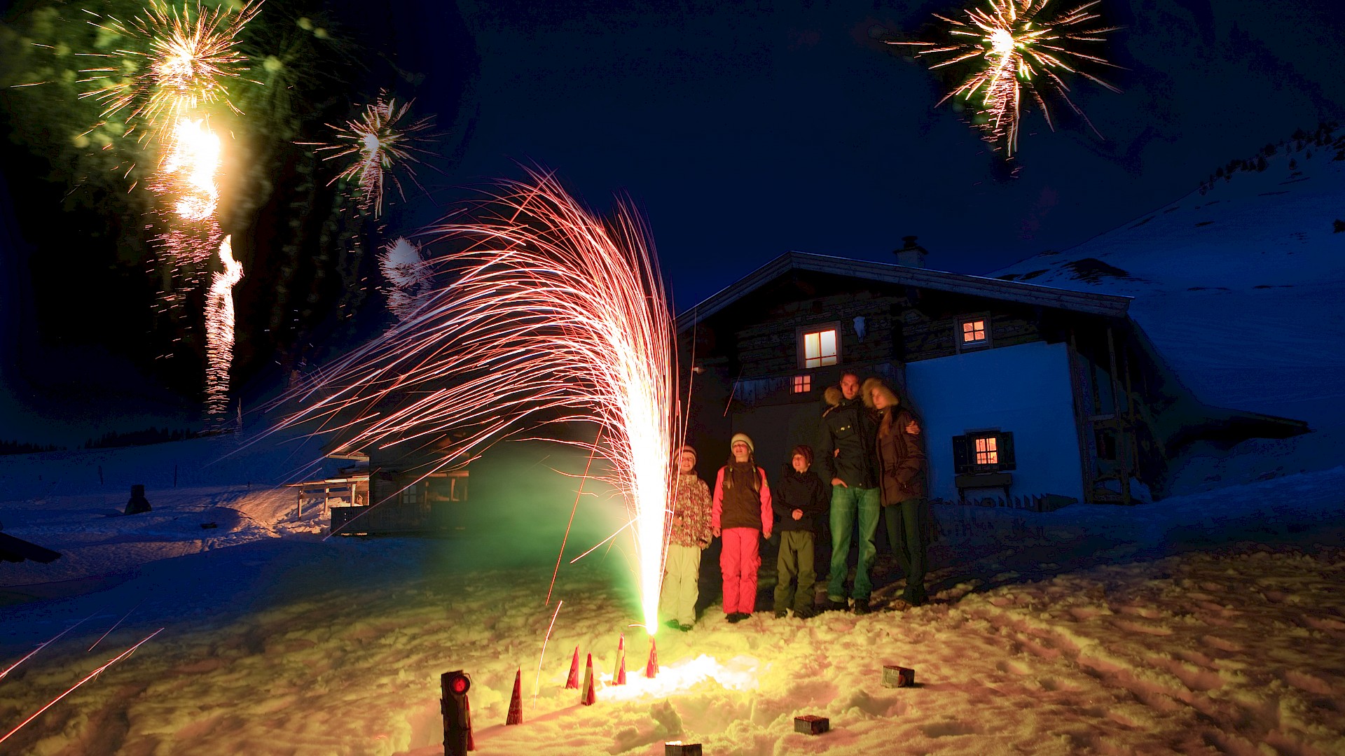 Thousands of colorful christmas balls decorate the Hotel Hanneshof. Experience the special atmosphere in the snow-covered Kitzbühel Alps.